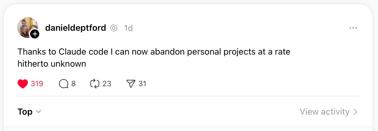 But maybe in the past I abandoned projects at the idea stage, whereas now I am abandoning them later in the process? That seems like a good thing?