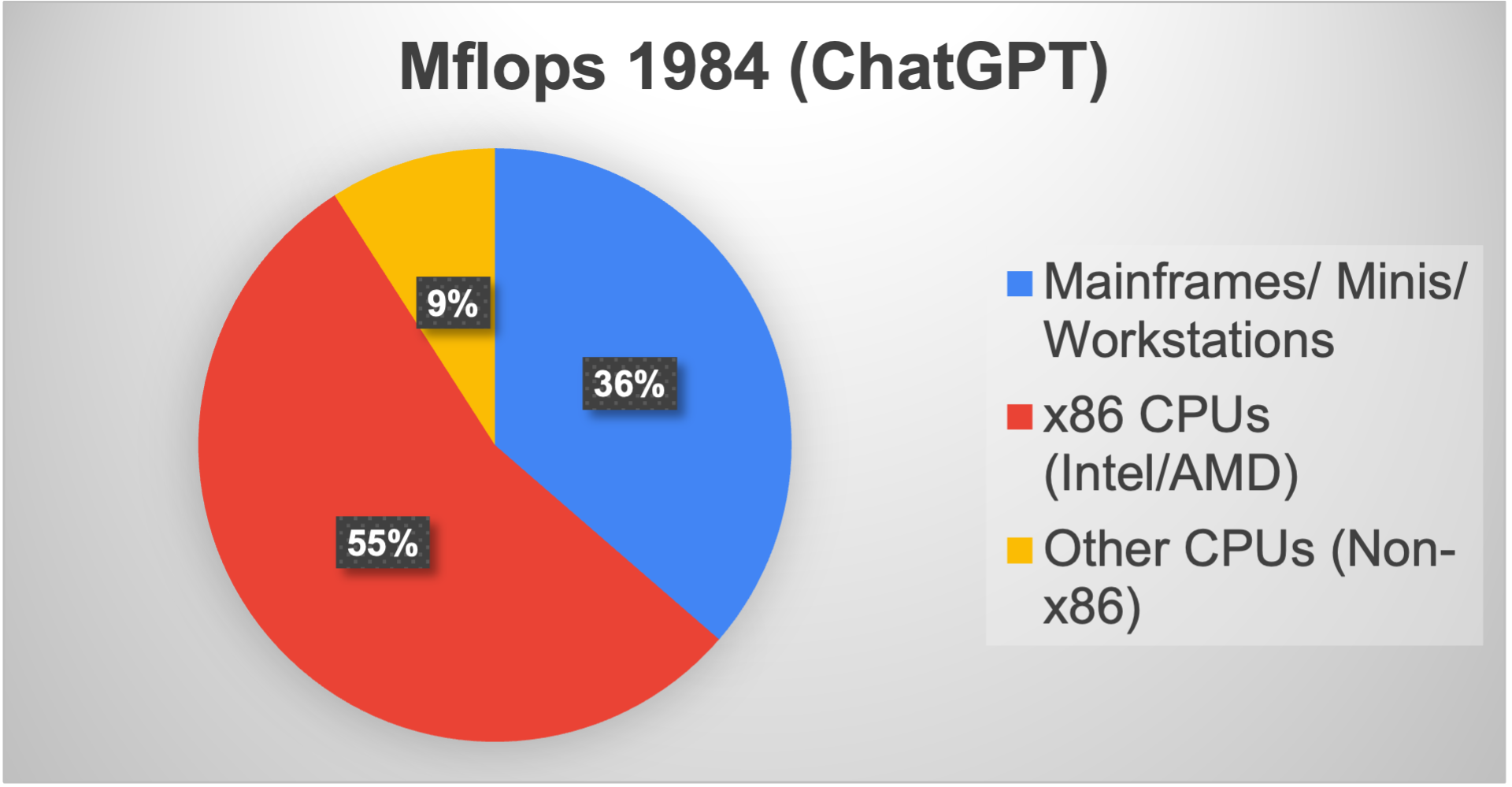 Vibe coding is all the rage, and analyzing the history of computing is a lot easier than coding, so I put my trust in Google Gemini and OpenAI ChatGPT to be my research analysts. I asked for reports on both the history of computing power and architectures, as well as some forecasts. I haven’t bothered to check every last citation and detail; I am going with the vibes. The reports appear to be generally accurate; they align with my own personal experience. They don’t completely agree, and I am sure there are errors in them, but directionally, they seem fine.