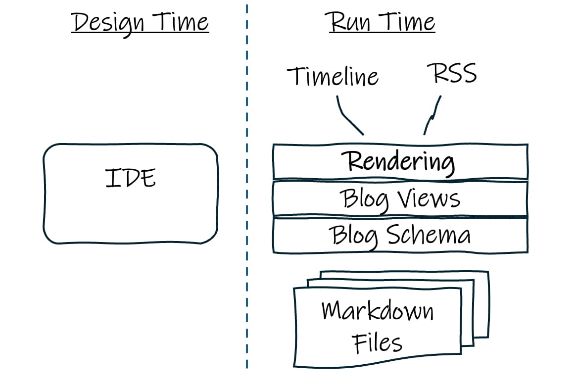 Now, today, with design-time AI tools like Claude Code, I can walk away from all those tools and just tell Claude the kind of data I have and the kind of views I want. Claude will take care of all the schema munging, JS wrangling, and CSS hoohah and deliver a blog. Which is great! I no longer have the time in my life to consider the intricacies of JS frameworks or the complexities of CSS version 5, or any other web development topics.