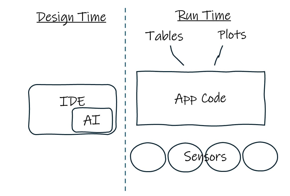 But I still end up with a codebase implementing a fixed blog view on my data. It is easier to maintain now (maybe! The regression behavior of AI-generated code seems likely to be interesting.) But it is still a fixed set of views. What if I want to see the 100 books I love the most, or how my genre consumption has changed over time, or a comparison of what I was reading about in 2005 vs 2025? Or what if I want to ask, “Will I like this new book that came out in 2025 based on my reading history,” or “What books have I liked that have not stood the test of time”? With design-time AI tools, I will need to envision all these queries and instruct the AI tool to create the appropriate views. And then redeploy the blog and fix any regression errors. And now I will have new code deployed with a new, larger set of fixed views. Rinse and repeat as I think of new ideas — which may be views that I use once, and never again, but now they are in the code and must be maintained.