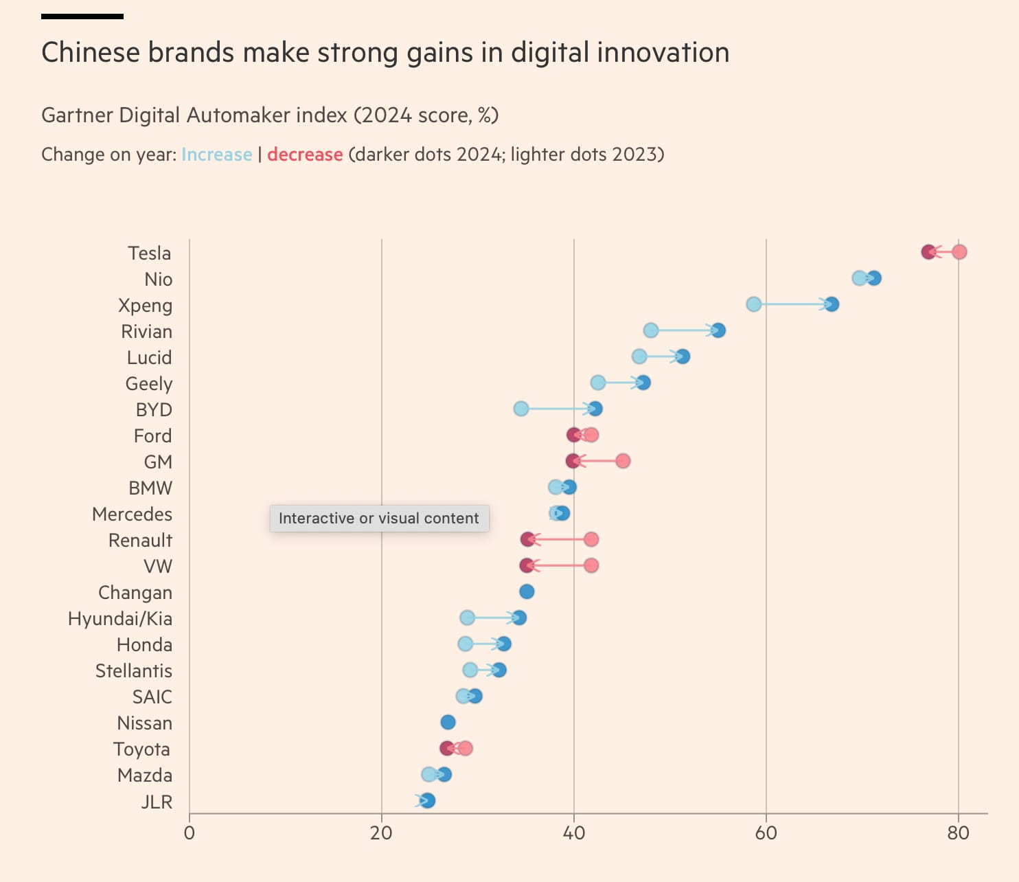 This recent Gartner ranking of automaker digital innovation is a grim picture for legacy automakers — Gartner ranking of auto maker digital performance ($).