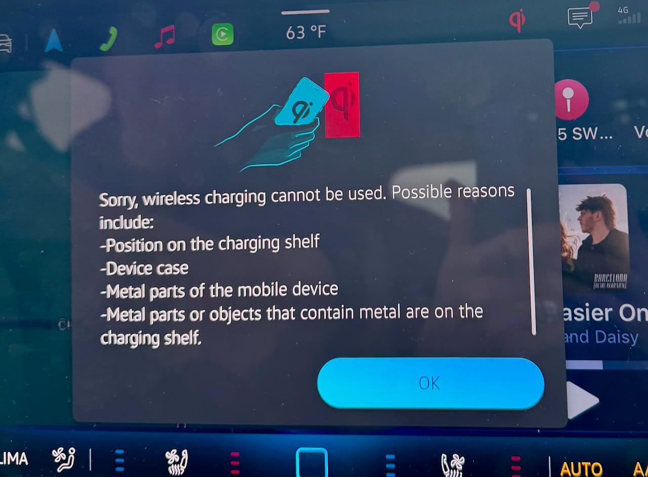 About every second time I try to use the wireless charging for my phone, I get this pop-up while driving: