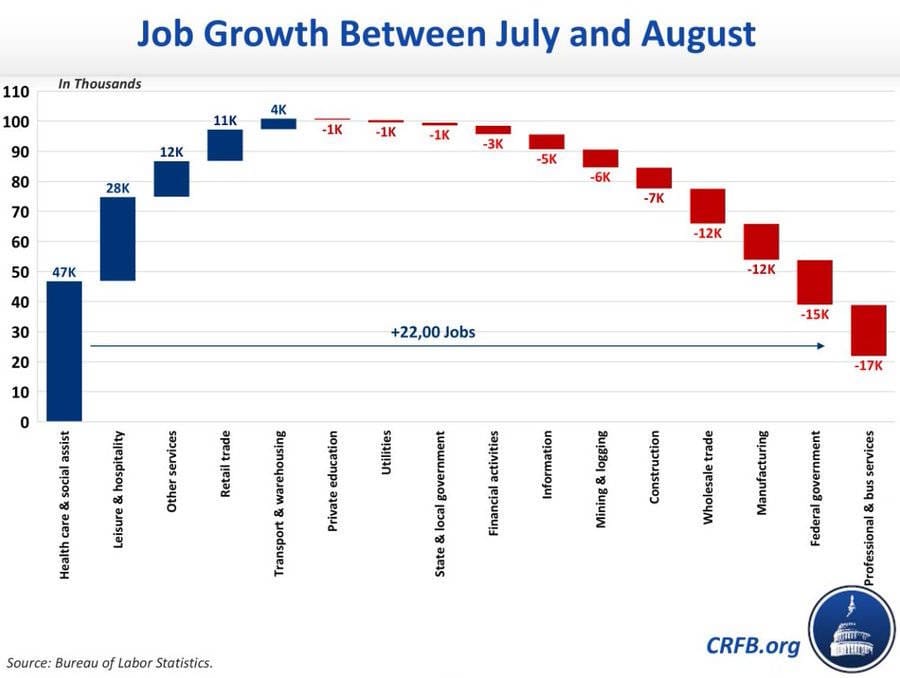 Second, a chart about job growth over the last month, from Noah Smith, who credits Heather Long, who credits Marc Goldwein. And this is a great great chart:
